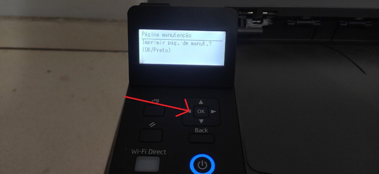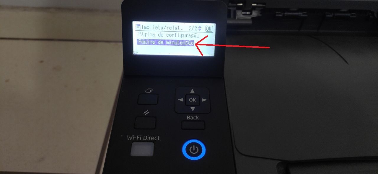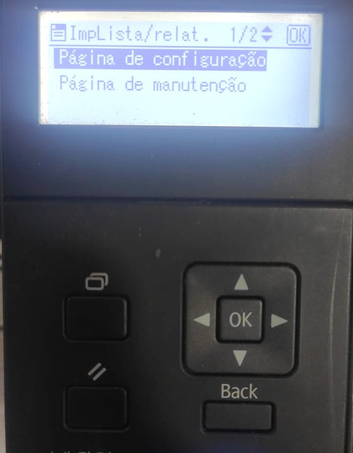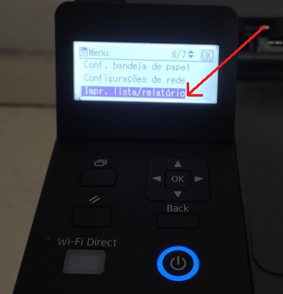 Use as setas para descer até Impr. lista/relatório e depois clique em OK