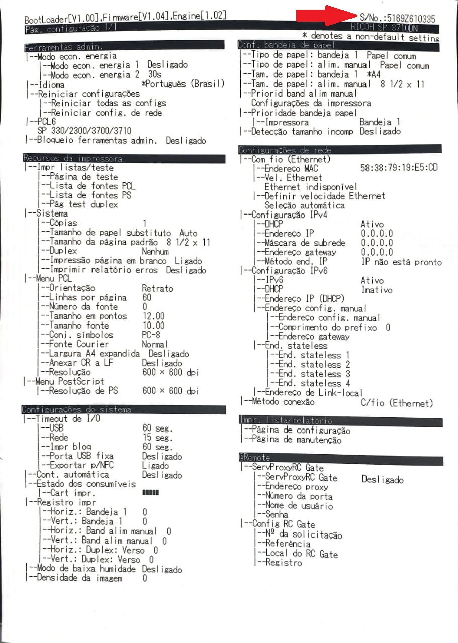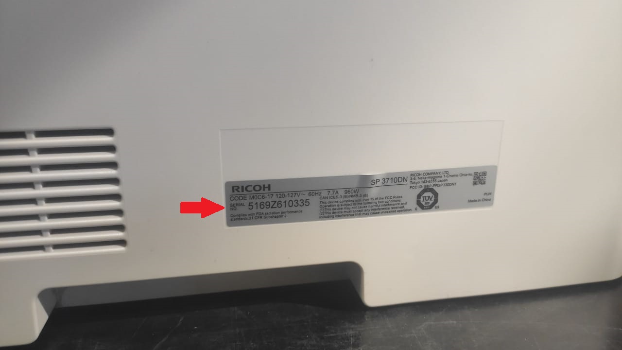 Você pode ver também o SERIAL NUMBER na lateral esquerda do equipamento